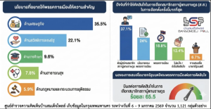 ประชาชนร้อยละ 35.5% ระบุว่า ด้านเศรษฐกิจ คือสิ่งที่อยากให้พรรคการเมืองให้ความสำคัญมากที่สุด