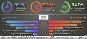 ประชาชนร้อยละ 64% ระบุว่าจะตัดสินใจเลือก สส. ทั้งแบบแบ่งเขตและแบบบัญชีรายชื่อจาก พรรคการเมืองเดียวกัน