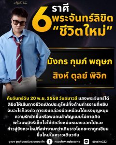 โดย หมอเค้ก ทำนายว่า “6 ราศี พระจันทร์ลิขิต ชีวิตใหม่ มังกร กุมภ์ พฤษภ สิงห์ ตุลย์ พิจิก คืนจันทร์ดับ 20 พ.ย.2568 วันอมาวสี แสงพระจันทร์ได้ลิขิตให้เส้นทางชีวิตเปิดประตูใหม่