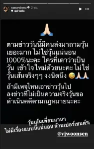 ถ้ามีเพจไหน เอาข่าววุ้นไปลงข่าวที่ไม่เป็นความจริง วุ้นขอดำเนินคดีตามกฎหมายนะคะ