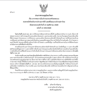ประกาศ ณ วันที่ 22 พฤศจิกายน พ.ศ. 2568 เวลา 17.00 น.