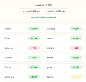 โดยมีถิติการปรับราคาทองขึ้น-ลงในแต่ละเดือนดังนี้