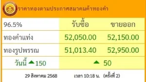 ราคาทอง วันนี้ 29 ส.ค. 68 ปรับเพิ่มขึ้น เช็กราคาทอง ล่าสุดกี่บาท