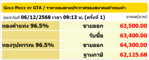 ราคาทอง ปิดตลาดวันที่ 6 ธ.ค. 2568