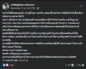 “หมอเหรียญทอง” พลตรี เหรียญทอง แน่นหนา โพสต์ข้อความ ระบุ