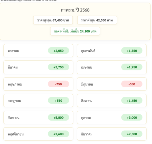 จากข้อมูลถึอว่าเป็นการปรับราคาขึ้นมากกว่าทั้งปี 2567 ที่ผ่านมา ทั้งนี้ จากการตรวจสอบ ผ่านเว็บไซด์ ทองคำราคา.com การปรับราคาทองขึ้น-ลงในแต่ละวันพบว่า