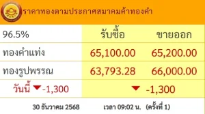 ราคาทองวันนี้ 30 ธ.ค. 68 ประกาศครั้งที่ 1