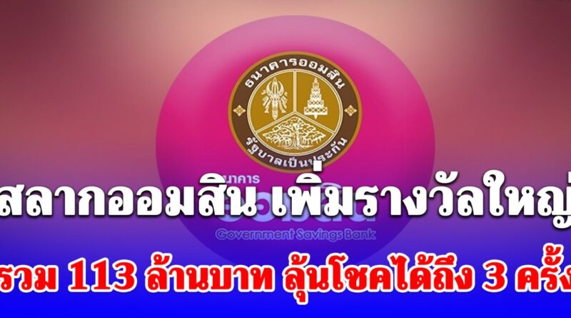 สลากออมสิน เพิ่มรางวัลใหญ่รวม 113 ล้านบาท ลุ้นโชคได้ถึง 3 ครั้ง