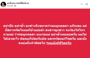 แค่นี้สภาพจิตใจผมก็ย่ำแย่แล้ว สงสารลูกสาว จนร้องไห้โทรถามแม่ ว่าพ่อผูกคอxายเหรอแม่ อย่าซ้ำผมเลยครับ ผมไม่ได้เลวอะไร ผิดผมก็น้อมรับผิด และพร้อมแก้ไขครับ และยังคงมุ่งมั่นทำดีต่อไป #ผมยังมีชีวิตครับ