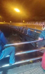 เมื่อไปถึงพบรถกระบะตู้ทึบจอดอยู่ และมีชายคนหนึ่งนั่งห้อยขาบนราวสะพาน เจ้าหน้าที่พยายามพูดคุยปลอบใจเพื่อไม่ให้คิดสั้น แต่สุดท้ายชายหนุ่มกลับลุกขึ้นยืนแล้วกระโดดลงไปต่อหน้าผู้คนที่อยู่ในที่เกิดเหตุ