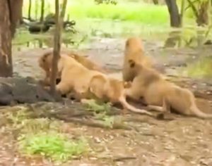 ก่อนจะลากลงไปกับพื้น แล้วค่อย ๆ กัดร่างของเจ้าหน้าที่ จากนั้น สิงโตอีก 3-4 ตัวได้เข้ามารุมทำร้ายและกัดร่างเจ้าหน้าที่จนบาดเจ็บสาหัส