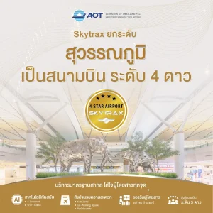 AOT ปลื้ม ท่าอากาศยานสุวรรณภูมิได้รับการยกระดับเป็นสนามบินระดับ 4 ดาวจากการประกาศของ Skytrax