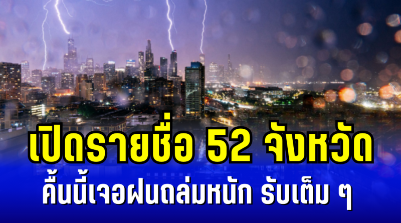 คืนนี้โดนเต็ม ๆ! เปิดรายชื่อ 52 จังหวัด เจอฝนถล่มหนัก ลมกระโชกเเรง