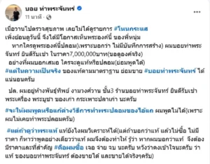 หากใครดูพระองค์นี้ปลอม (เพราะบอกว่าไม่มีบันทึกการสร้าง) ผมบอยท่าพระจันทร์ ยินดีรับเช่า ในราคา 7,000,000 บาท (ขอดูองค์จริง) อย่างที่ผมบอกเสมอ ใครจะดูแท้หรือปลอม (ย่อมพูดได้) แต่ในความเป็นจริงของแท้ตามมาตราฐานย่อมขายบอยท่าพระจันทร์ได้แน่นอนครับ