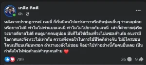 เกลือ กิตติ เชี่ยววงศ์กุล หรือ เกลือเป็นต่อ นักแสดงชื่อดัง ได้ออกมาโพสต์ข้อความระบุว่า