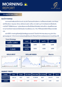 เเนะนำการลงทุนด้านทองคำ รอบเช้าวันนี้ 4 พฤศจิกายน 2568 โดย บริษัท จีแคป จำกัด ราคาทองคำเคลื่อนตัวต่ำกว่าระดับ $4,0000 ในช่วงเช้าวันอังคาร ภายใต้แรงกดดันหลัก จากท่าทีของเฟดที่เริ่มกลับมา Hawkish ชัดเจน หลังประธานเฟด เจอโรม พาวเวลล์ ระบุว่าการปรับลดดอกเปียเพิ่มเติม ภายในปีนี้ ไม่ใช่สิ่งที่แน่นอน แม้เฟดเพิ่งลดอกเบี้ยครั้งที่สองไปเมื่อสัปดาห์ก่อนก็ตาม ส่งผลให้ตลาด ลดความคาดหวัง ต่อการลดดอกเบี้ยเดือนธันวาคม เหลือประมาณ 70% ทำให้ดอลลาร์แข็งค่าขึ้นและกดดันฝั่งทอง