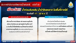 วันที่ 14 พฤศจิกายน 2568 สำนักงานทรัพยากรน้ำแห่งชาติ ได้แถลงการณ์ ประกาศ ฉบับที่ 30/2568 เรื่อง เฝ้าระวังน้ำท่วมฉับพลัน น้ำป่าไหลหลาก ในพื้นที่ภาคใต้