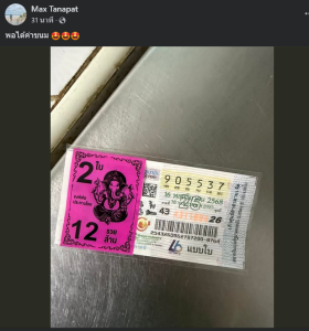และเชื่อว่าหลายคนรู้จักเป็นอย่างดี สำหรับบ่าวแม็ก ที่เมื่องวดวันที่ 1 พฤศจิกายน 2568 ที่ผ่านมาถูกรางวัลที่ 1 จำนวน 24 ล้านบาท ล่าสุดวันนี้เจ้าตัวถูกอีกแล้ว! ซึ่งเป็นเลขท้ายสองตัว 37 จำนวน 2 ใบ โดยเจ้าตัวได้โพสต์ภาพพร้อมระบุข้อความว่า พอได้ค่าขนม